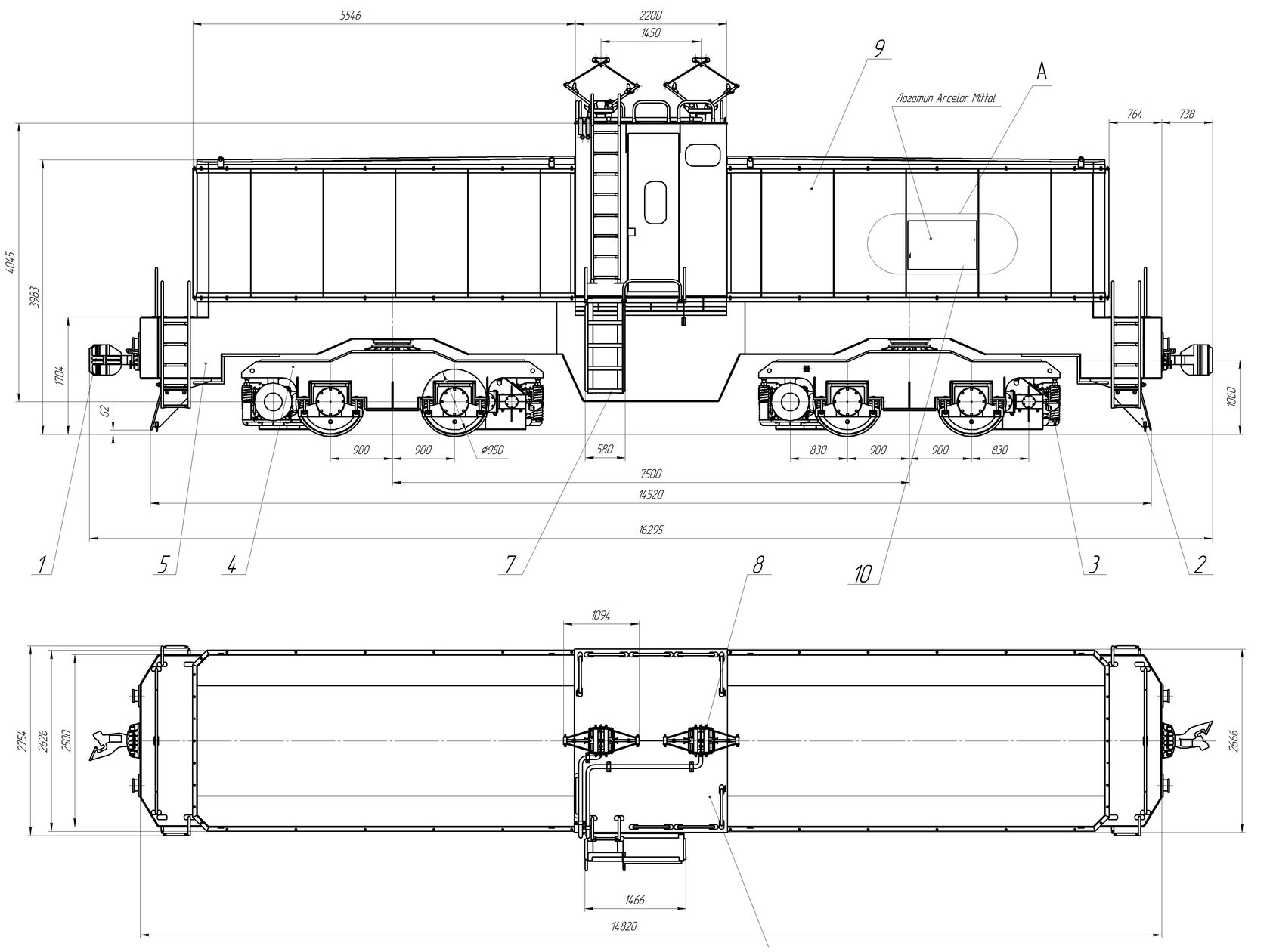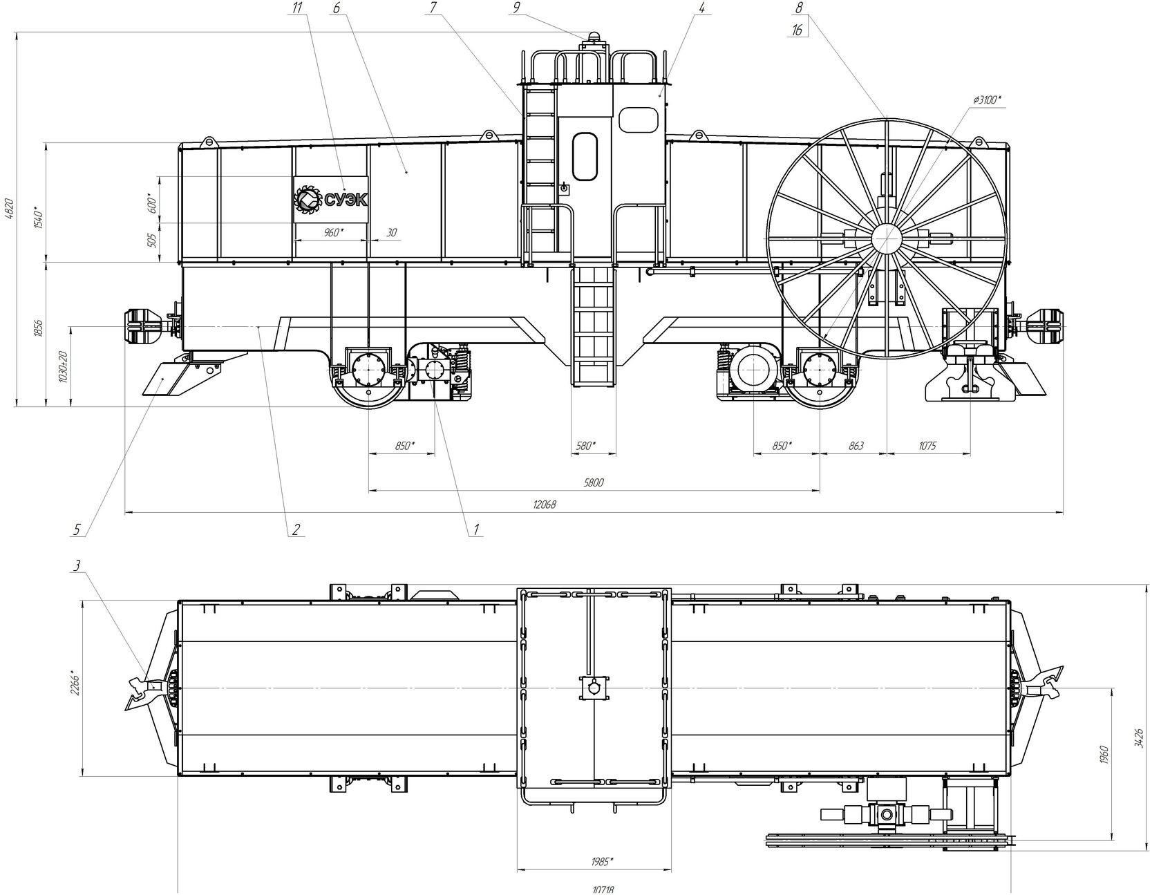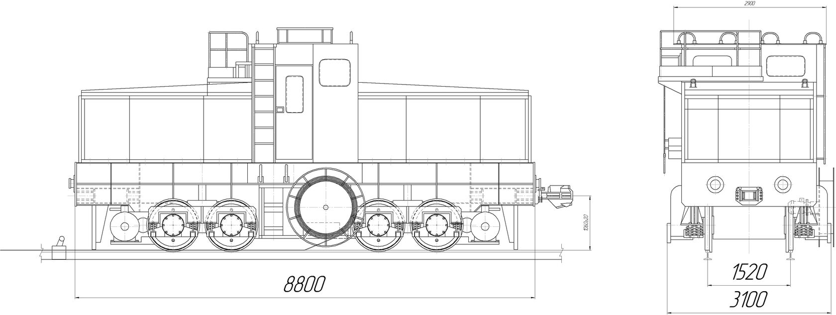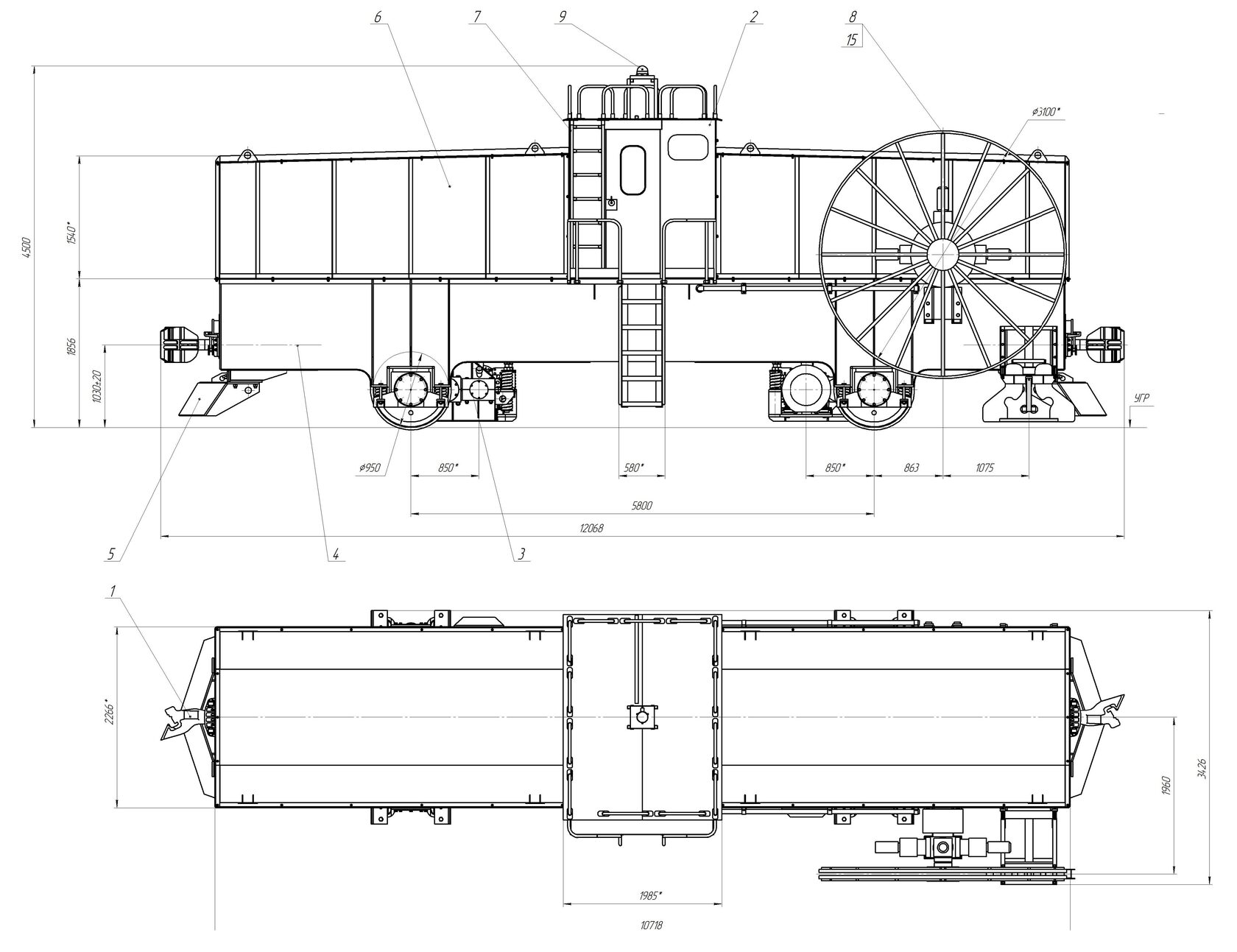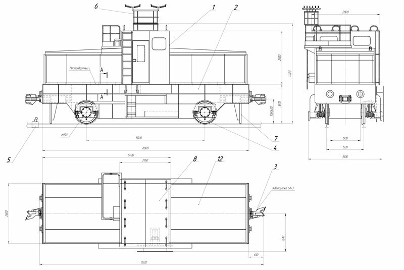 Габариты вагонотолкателя, мм -длина -ширина -высота; 12068* 2940* 4500*